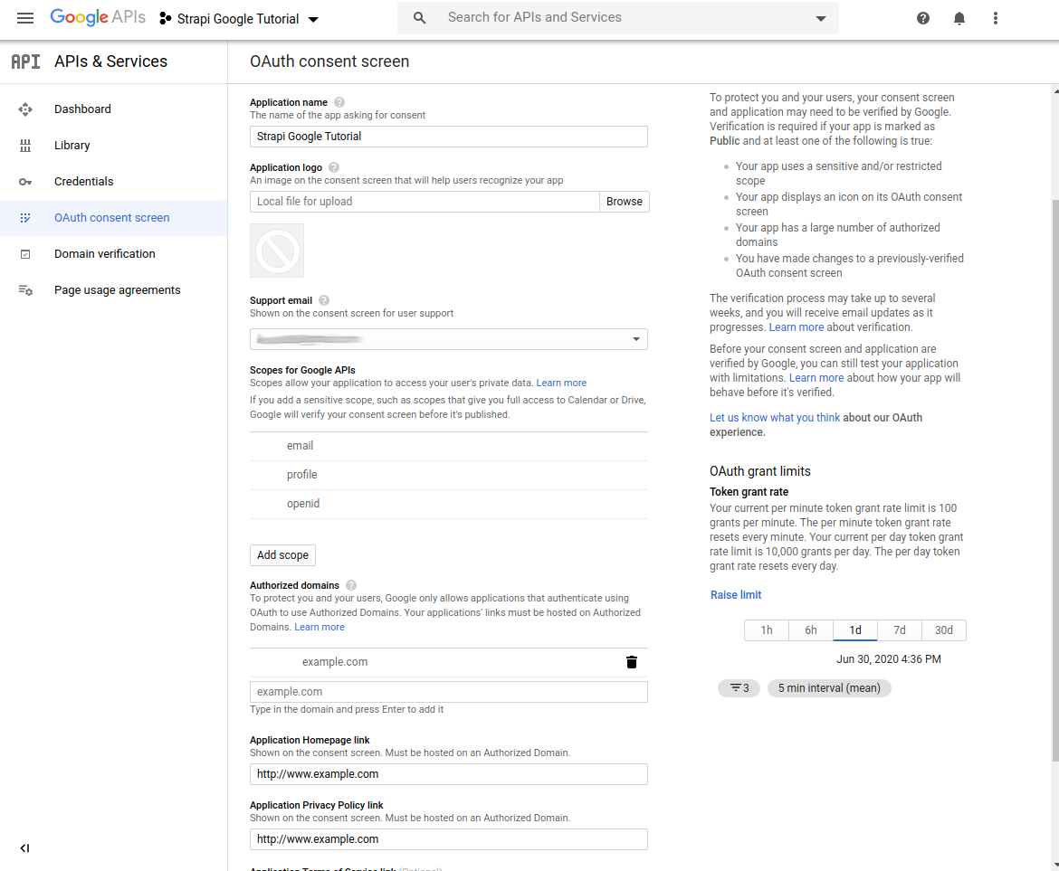 This short walkthrough is part of the post Strapi authentication via Google Provider with React and describes how to create a Client ID and Secret for OAuth authentication via Google.